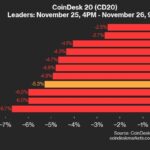 CoinDesk Indices presents its daily market update, highlighting the performance of leaders and laggards in the CoinDesk 20 Index. The CoinDesk 20 is currently trading at 3150.49, down 5.3% (-175.81) since 4 pm ET on Monday. None of the 20 assets are trading higher. Leaders: BTC (-2.5%) and AVAX (-2.7%). Laggards: XLM (-14.6%) and POL […]