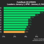 CoinDesk Indices presents its daily market update, highlighting the performance of leaders and laggards in the CoinDesk 20 Index. The CoinDesk 20 is currently trading at 3536.7, up 3.8% (+130.21) since 4 p.m. ET on Wednesday. 18 of 20 assets are trading higher. Leaders: RENDER (+7.8%) and SOL (+7.5%). Laggards: HBAR (-0.5%) and XLM (-0.3%). […]